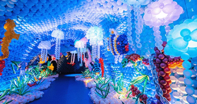 Immerse in illuminated balloon art installations blending light, colour, and whimsical storytelling.